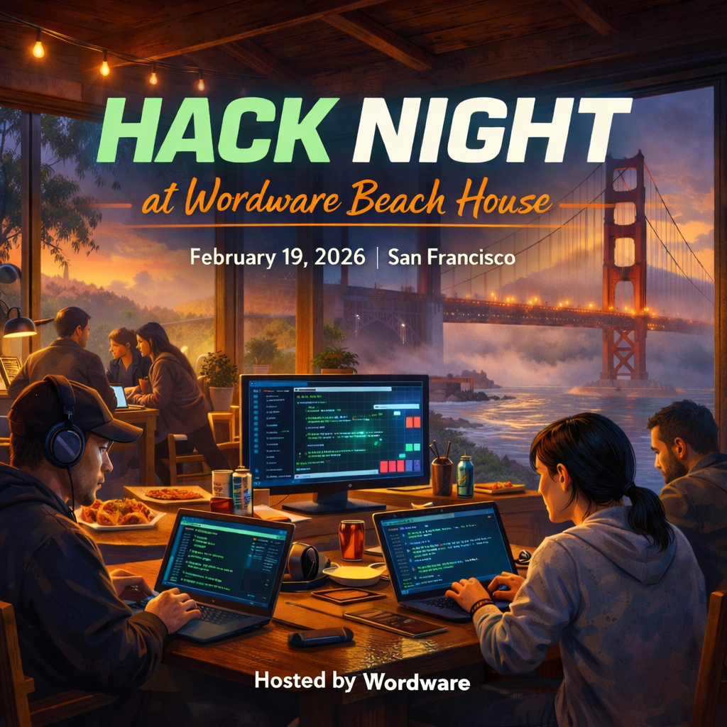 ## What's Hack Night? Five hours. One room full of builders. Zero BS. Hack Night is what happens when you skip the small talk and just build something. You show up with an idea (or find one there), spend a few hours turning it into something real, and demo it at the end. That's it. **When**: February 19, 2026 | 4:00 PM - 8:45 PM PT **Where**: Wordware Beach House, San Francisco ## Here's How It Works **4:00 PM - Doors Open** Show up. Grab food. Meet other builders. Figure out what you're making tonight. **4:30 PM - Quick Tech Talks** Sponsoring companies share what they're building and show off their APIs/tools. These are strictly 10 minutes each—just enough to see what's possible, then you're free to use their tech (or not) in your project. **5:30 PM - Build Time** Music on. Heads down. Build whatever you want. Two solid hours to ship something that works. This is the good part. **7:30 PM - Demo Time** Show what you made. Get feedback. See what everyone else built. Compete for prizes through the HackerSquad platform. **8:45 PM - Wrap Up** Final demos and prize distribution. Then probably keep talking about what you built because that's what builders do. ## What You Need to Bring * Your laptop * An idea (or just show up and we'll help you find one) * Willingness to ship something in a few hours That's it. Food's provided. WiFi's there. Just bring yourself and your ability to build. ## Who's This For? You're a developer who likes making things more than talking about making things. Maybe you: * Want to try out a new framework or API without overthinking it * Have a side project idea that's been sitting in your brain * Just like the energy of being around other people who build * Want to see what you can actually ship in a focused 2-hour sprint * Are tired of networking events that feel like LinkedIn came to life All skill levels welcome. Seriously. Some people show up and build their first full-stack app. Others hack together something weird with AI. Both are equally valid. ## Why It's Worth Your Evening There's something about having a hard deadline and a room full of other builders that makes you actually ship. No endless planning. No "I'll finish it later." You build it, you demo it, you're done. Plus you get to: * See what other devs are building in real-time * Learn from quick tech talks about tools you might not have tried * Actually use the food and drinks you'd normally get at events (because you'll be there working, not just networking) * Walk away with something you built today, not next month ## The Wordware Beach House Vibe We're doing this at Wordware's Beach House in SF. If you haven't been, it's worth the trip just for the space. Beachy, relaxed, perfect for heads-down building with good music and better company. ## Prizes & HackerSquad Build something cool, demo it well, and win prizes through HackerSquad. We'll share more details on prize categories closer to the event, but expect the usual: best use of sponsor tech, most creative build, best demo, etc. ## Ready to Build? Register below. Spots are limited by the venue, and these tend to fill up fast. We'll send you all the logistics (exact address, parking, what to expect) once you're confirmed. See you on the 19th. Bring your best ideas and your shipping energy.